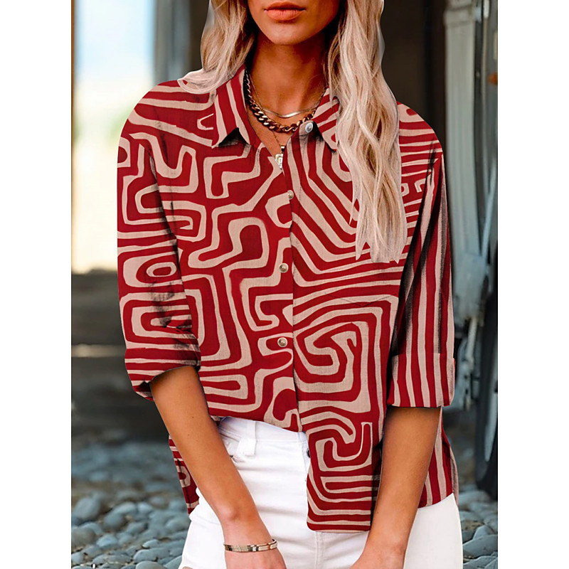 Women's Shirt Geometric Active Daily Stylish Long Sleeve Shirt Collar Regular Tops Daily Holiday Buttons Print Red Summer Spring Fall