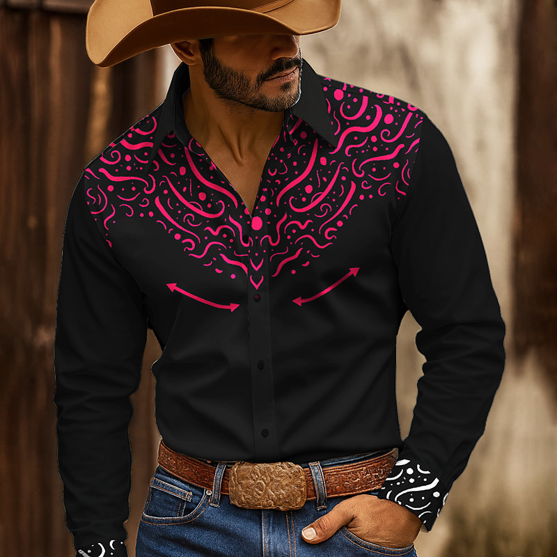 Men's Graphic Prints Cowboy Shirt Western Shirt Cowboy Shirt Long Sleeve Fashion Streetwear Designer Outdoor Daily Fall Winter Turndown Print Black Red Blue Khaki
