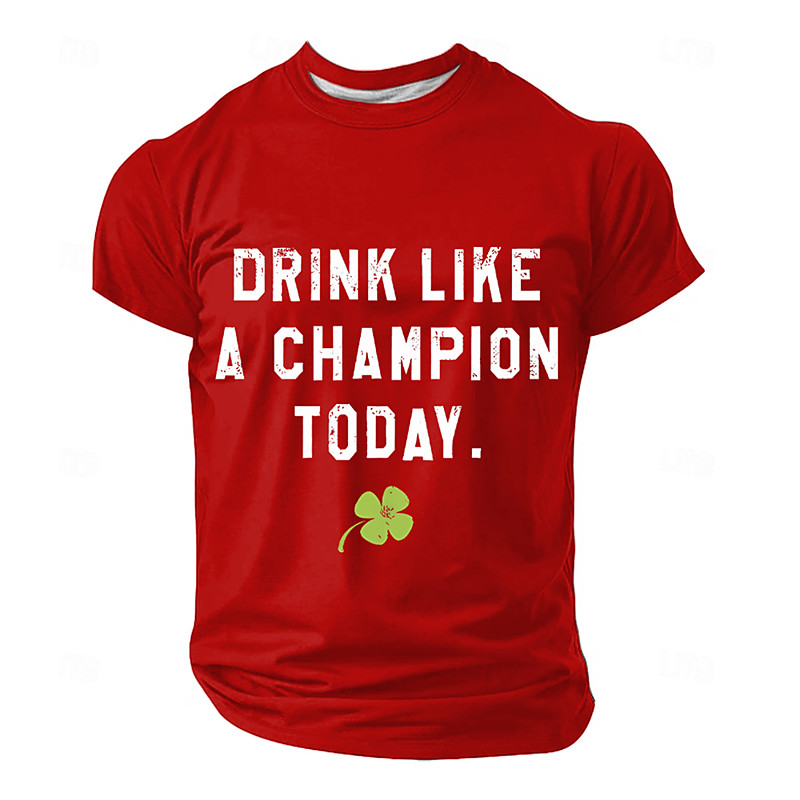 St. Patrick Men's Shamrock Lucky Irish T Shirt Short Sleeve T shirt 3D Print Crew Neck Shirt Designer Casual Club Party Holiday Black Red Green Summer Spring Clothing Apparel S M L XL XXL XXXL