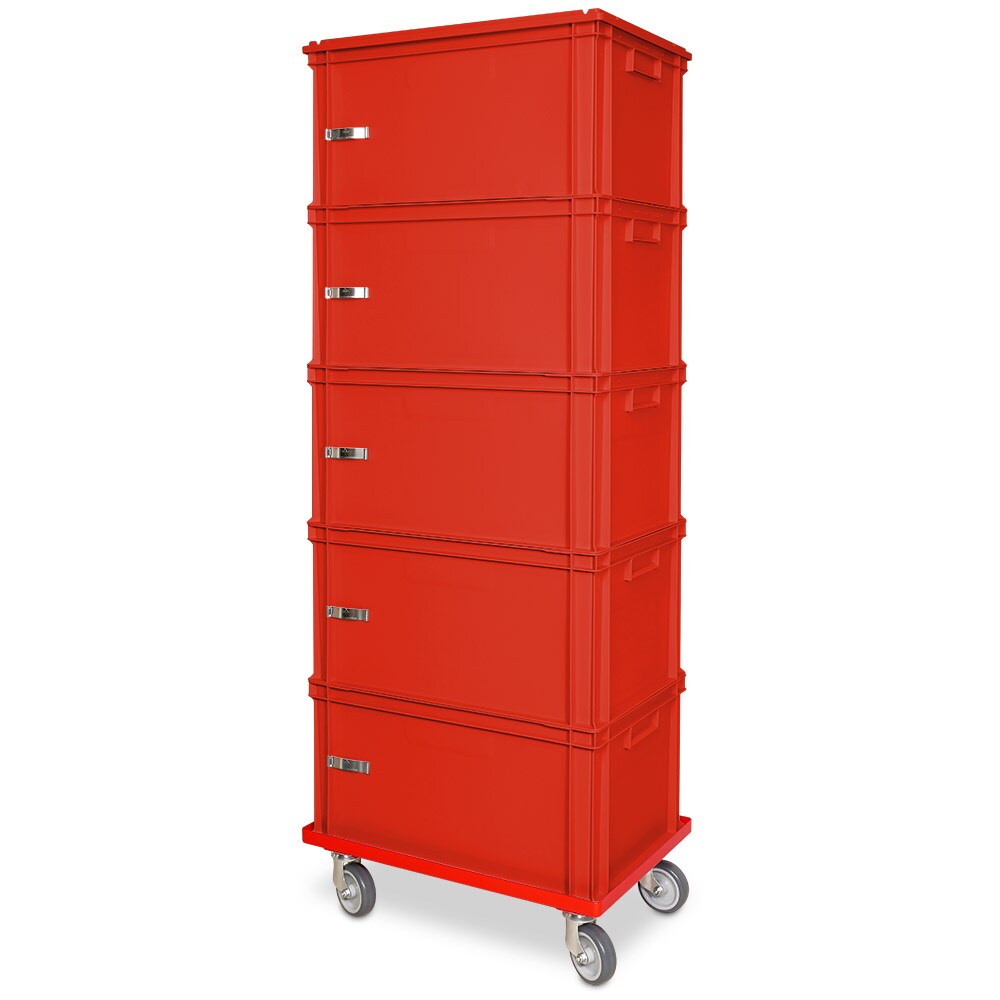 BRB Archiv-Ordnerturm mit Roller, 5 Behälter in rot