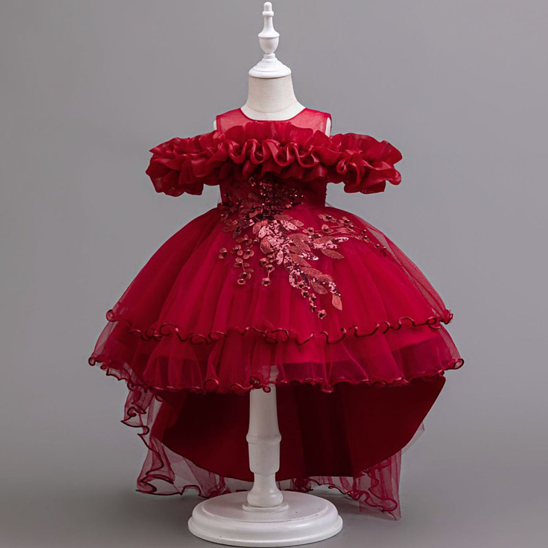Kids Girls' Flower Girl Dress Dress Rainbow Flower Sleeveless Wedding Party Sequins Pleated Bow Cute Lace Tulle Knee-length Flower Girl's Dress Champagne Pink Wine