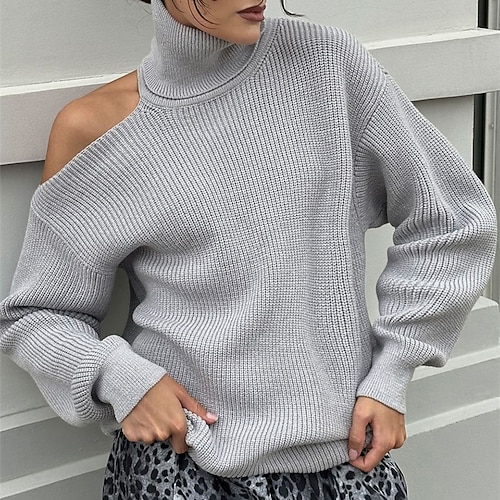 Per donna Felpa Maglione Moda Streetwear Casual Colore Puro A Coste Dolcevita Lavorato a maglia Spalle scoperte Manica Lunga Top Regolari Maglia All'aperto Quotidiano Weekend Nero Rosso Autunno