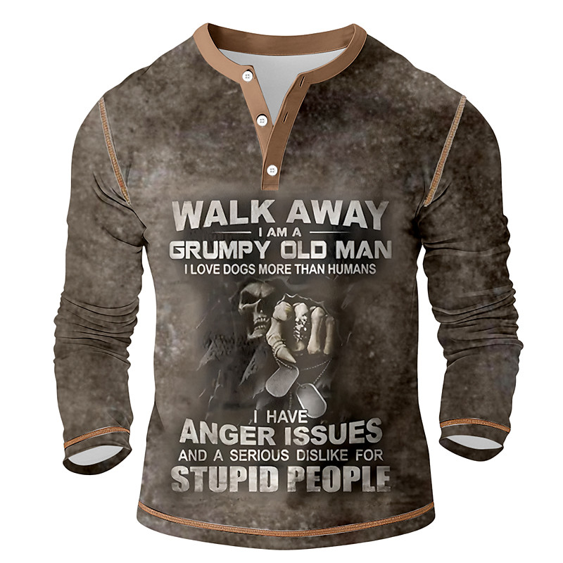 Men's Graphic Vintage Henley Shirt Tee Long Sleeve Vintage Fashion Designer Casual Daily Outdoor Spring Spring Fall All Seasons Dark Brown Army Green Dark Gray Navy Blue Henley Henley T-Shirt