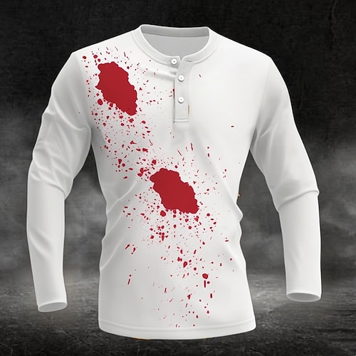 T-Shirt Uomini Macchie di Sangue Divertente Blood stains Henley Camicia a Maniche Lunghe Fashion Carina Quotidiana Casual Festa Autunno Inverno Primavera e Autunno 1 2 3 4 Henley Henley T-Shirt