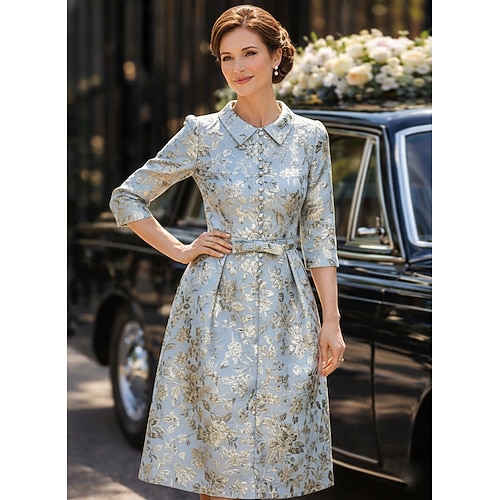 Linea ad A Lunghezza alla caviglia Lunghezza Tè Abito da invitata a nozze Abito da cerimonia per signora Manica 3/4 Bavero Elegante Vintage Formale Ospite di nozze Ricevimento di matrimonio Jacquard
