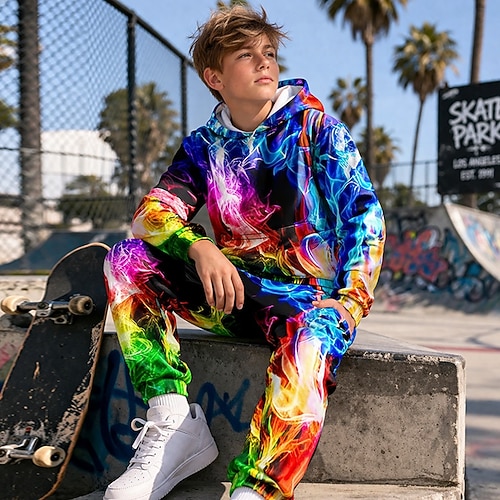 Ragazzi 3D Grafico Fulmini Astratto Set Felpa con cappuccio Pantaloni della tuta Tuta sportiva Tute da ginnastica Manica Lunga Stampa 3D Primavera Autunno Sport Moda Casual Bambini 4-12 Anni Con