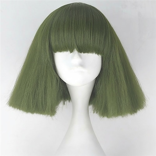 parrucca sintetica lady gaga parrucca bob dritta corta castano scuro grigio argento biondo scuro rosa verde capelli sintetici 12 pollici da donna comode e soffici parrucche di carnevale rosso rosa