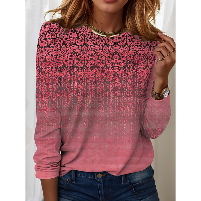 Women's T shirt Long Sleeve Crew Neck Long Sleeve Tunic Graphic Geometric Vintage Casual Regular Tops Daily Print Yellow Blue Purple Green Spring Fall Prefall