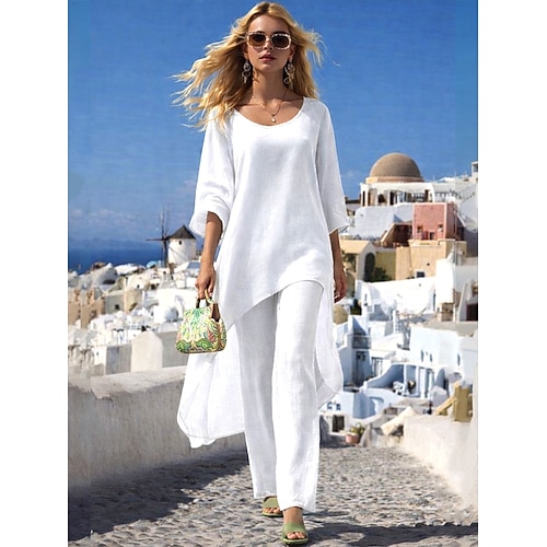 Per donna Set di Pantaloni Manica 3/4 Monospalla Tinta unica Stratificato Elegante Moda Streetwear Casuale Quotidiano Nero Bianco Vino Primavera Vestibilità regolare