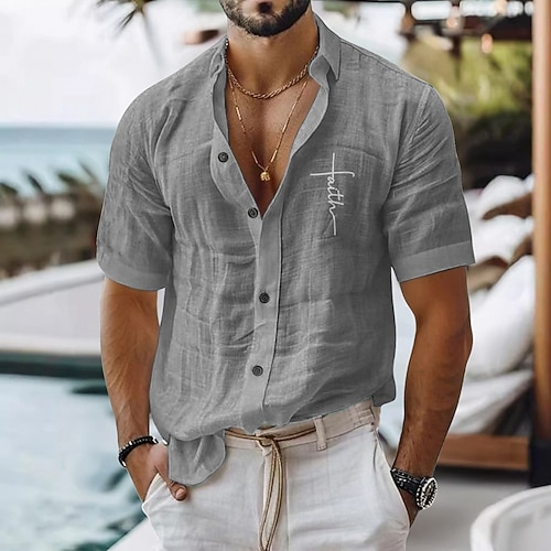 Per uomo Camicia di lino Camicia casual Camicia in cotone e lino Camicia con Bottoni Fede Vacanza Abbigliamento quotidiano Nero Bianco Verde chiaro Rosa Manica Corta Bavero Tutte le stagioni