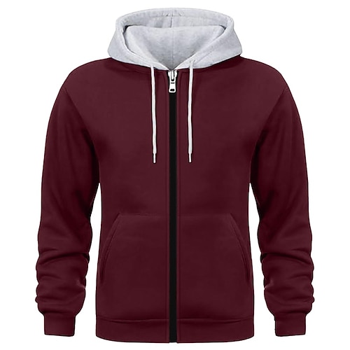 Per uomo Felpa con cappuccio Felpa con cappuccio a zip intera Rosso bordeaux Nero Bianco Blu marino Cammello Con Cappuccio Semplice Patchwork Blocco di colore Sport Outdoor Casuale Quotidiano