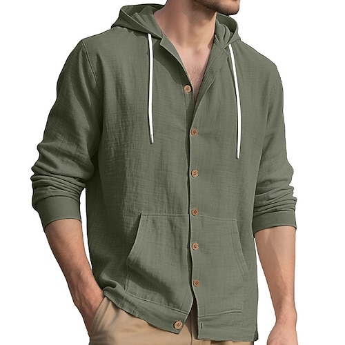 Per uomo Camicia Camicia di lino Camicia Estiva Abbigliamento da spiaggia Camicia con cappuccio Tinta unica Vacanza Streetwear Nero Bianco Giallo Blu marino Manica Lunga Colletto a Camicia Estate