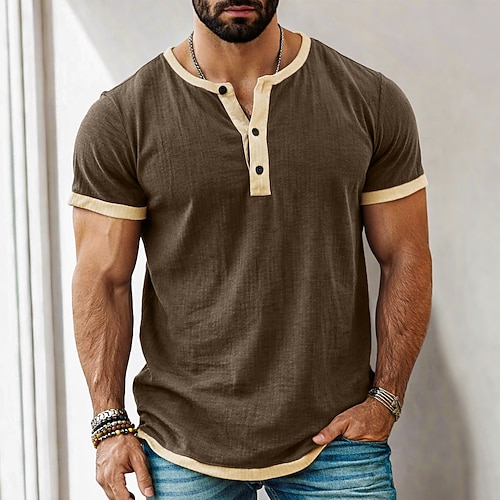 Da uomo Maglietta Maglia Henley Camicia a Maniche Corte Manica Corta Henley Estate Primavera Primavera Estate Blocco di colori Moda Designer Essenziale Patchwork Vacanza Streetwear Uscire Nero Blu