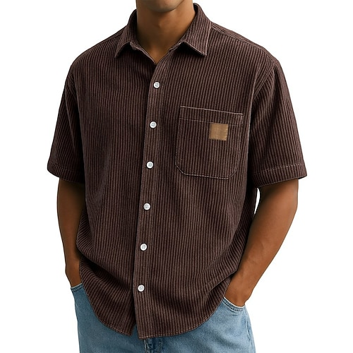 Per uomo Camicia Tessuto Camicia Estiva Camicia casual Camicia di Velluto a Coste Camicia con Bottoni Blu Nero Bianco Rosa Blu marino Manica Corta Semplice Bavero Casuale Quotidiano Tasca