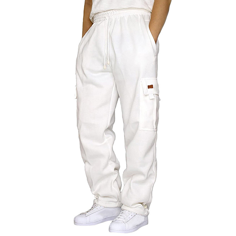Men's Fleece Pants Sweatpants Joggers Trousers Cargo Sweatpants Pocket Straight Leg Plain Comfort Breathable Outdoor Daily Going out Fashion Casual Black White
