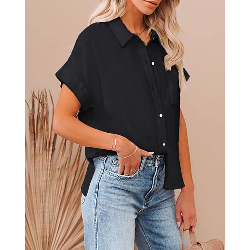 Shirt Cotton Linen Shirts Button Up Blouse Women's Black White Pink Plain Buttons Pocket Street Daily Fashion Shirt Collar Regular Fit S