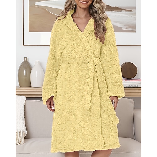 Per donna Pigiama Accappatoio Casual Colore Puro Allacciato Pantalone Casa Quotidiano Da letto Manica Lunga Felpa con Cappuccio Giallo Rosa Verde Grigio Autunno Inverno Vestibilità comoda