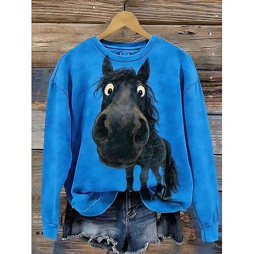Per donna Felpa Pullover Felpe Grafico Animale Caldo Classico Casual Manica Lunga Girocollo Top Regolari Casuale Casa Streetwear Stampato Blu Rosa Viola Marrone Autunno Inverno