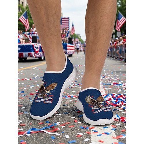 Patriotische, atmungsaktive Mesh-Sneaker für Herren zum Hineinschlüpfen – Adler- und Flaggenmotiv für Paraden, den 4. Juli, den 250. Jahrestag der USA und nationale Feierlichkeiten