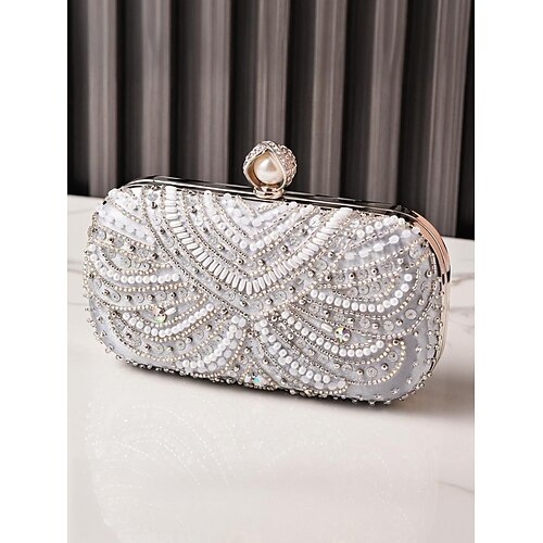 pochette da sera da donna decorata con perle di cristallo e design art déco vintage: elegante borsa per occasioni speciali e feste