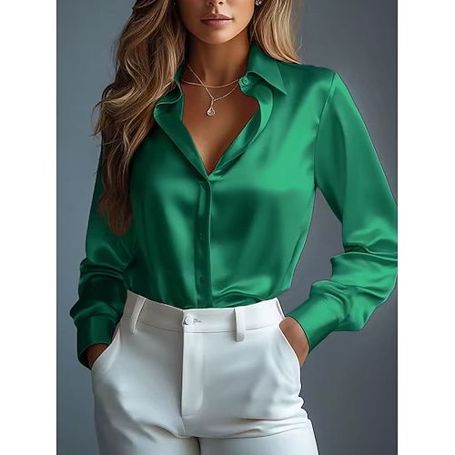 Per donna Camicia da lavoro Grafico A Pois Elegante Moderno Casual Manica Lunga Colletto a Camicia Top Regolari Lavoro Abbigliamento da sera Quotidiano Rosa Viola Verde Estate Primavera Autunno