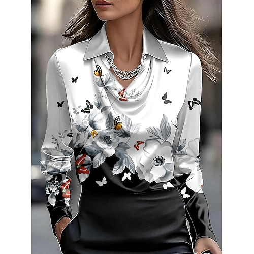 Camicia da donna Elegante Top Formale Camicia da lavoro Grafica Floreale Astratta Elegante Stile Casual Manica Lunga Collo Cavallo Feste Sera Abbigliamento Quotidiano Arricciato Drappeggiato Rosa