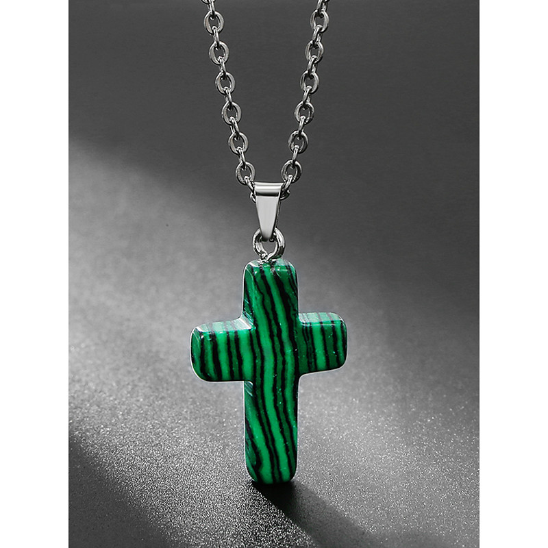 Men's Christmas Natural Stone Cross Pendant Necklace, Available in Multiple Colors, Stylish and Trendy Design, Perfect for Holiday Gifts