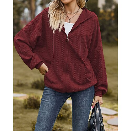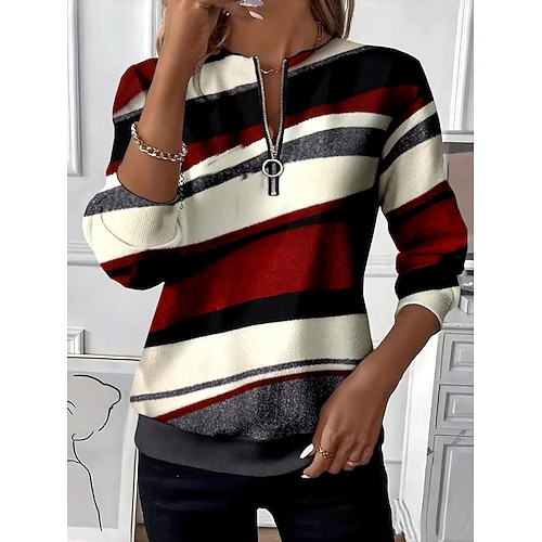 Per donna Felpa Pullover Felpe con cerniera Grafico Geometrico Blocco di colori Moda Casual Manica Lunga Girocollo Top Regolari Streetwear Abbigliamento Quotidiano Patchwork Cerniera Stampato Vino