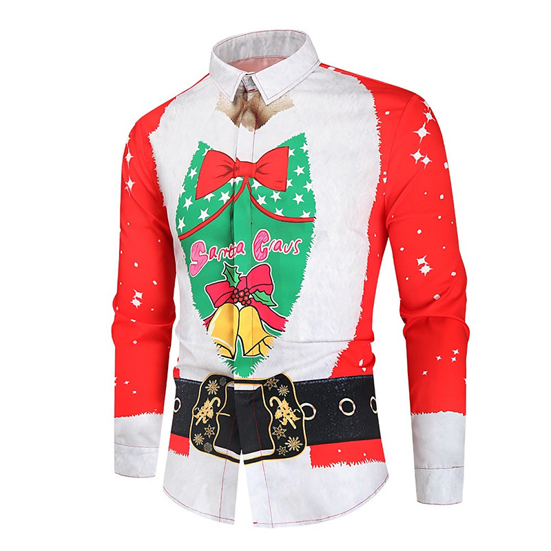 Christmas Men's Christmas Costume Printed Shirts Shirts Santa Claus Elk Graphic Prints Ugly Turndown Black and Red Red / White Black White Red Green Black 3D Print Street Long Sleeve Button-Down