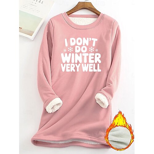Damen Pullover Sweatshirt Grafik Buchstabe Warm Lässig Flauschig Langarm Rundhalsausschnitt Rundhals Lange Oberteile Straße Lässig Hellrosa Schwarz Dunkelpink Blau Frühling Herbst Winter