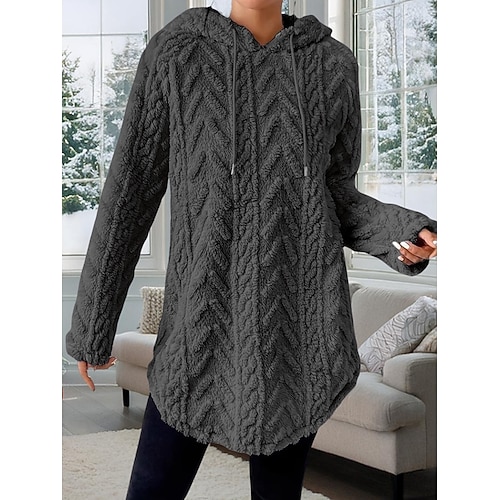 Damen Bluse Einfarbig Stilvoll Lässig Langarm Mit Kapuze Lange Oberteile Täglich Schwarz Rote Purpur Dunkelgray Aprikose Frühling Herbst Winter