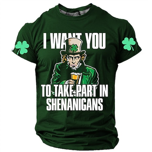 maglietta da uomo per il giorno di San Patrizio stampa 3D giorno di San Patrizio girocollo festa casual stampa 3D top a maniche corte stile etnico leggero casual comodo a b