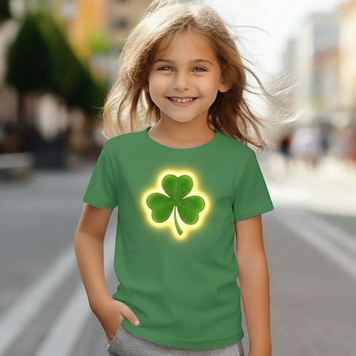 Giorno di San Patrizio Ragazze 3D Grafico Quadrifoglio Giorno di San Patrizio Maglietta Manica Corta Stampa 3D Estate Primavera Sport Moda Streetwear Bambini 4-12 Anni Girocollo Casuale Quotidiano