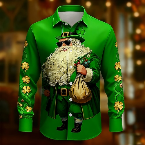 maglietta di San Patrizio per uomo - trifoglio fortunato Top a maniche lunghe con stampa 3D a trifoglio e colletto con revers, grafica irlandese, per la festa di San Patrizio