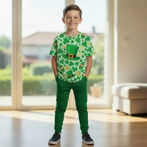 Giorno di San Patrizio Ragazzi 3D Grafico Quadrifoglio Giorno di San Patrizio Pigiama Set Pigiama Set Pigiama Maglietta Pantaloni Manica Corta Stampa 3D Estate Attivo Neutro Moda Bambini Dai 4 anni