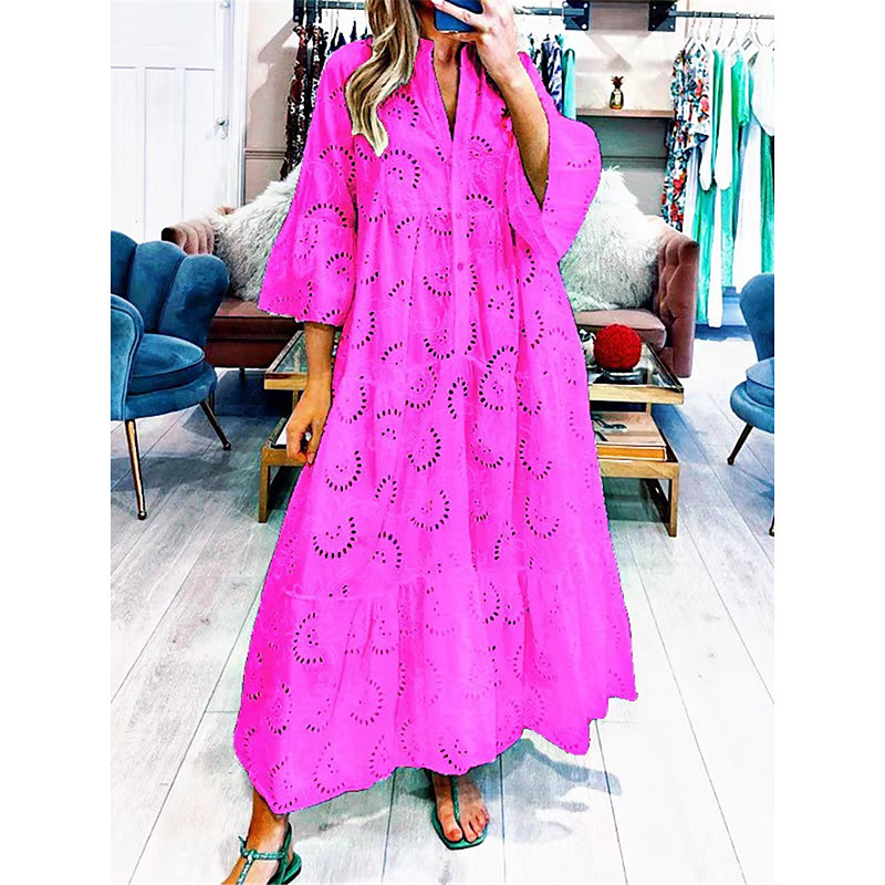 Women's Maxi Dress White Dress Lace Dress Boho Dress Casual Daily Loose Fit Plain 3/4 Length Sleeve Split Neck White Yellow Dark Pink Red Summer Spring
