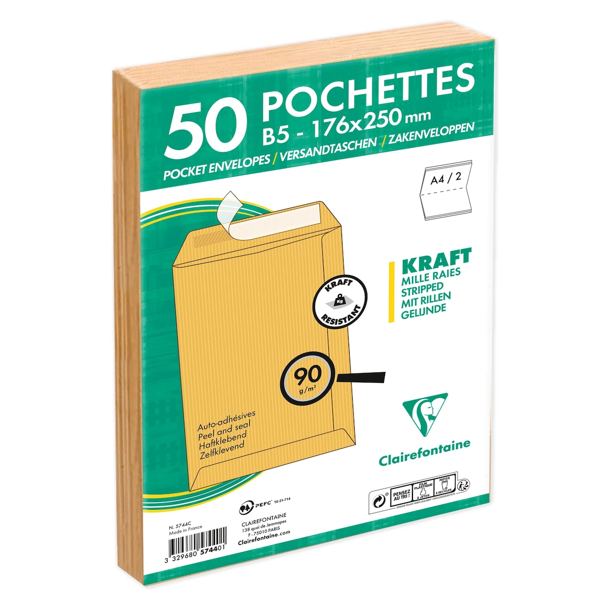 Clairefontaine 500x Versandtaschen haftklebend Kraft 176x250mm/B5 90g - Braun 5744C