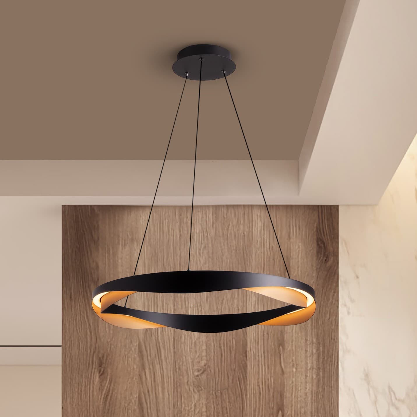 Nova Luce Radon - lampe suspendue - Ø 65 x 160 cm - 53W dimmable LED inclus - noir mat et or