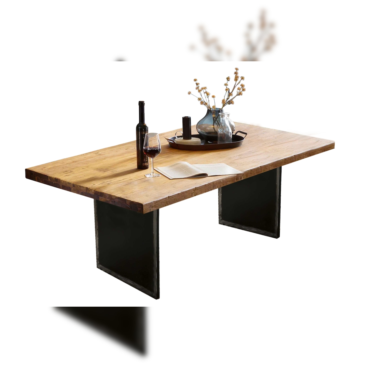 SIT Möbel Esstisch | Platte Altholz gerahmt auf 50 mm natur | A-Gestell Metall schwarz | B 200 x T 100 x H 74 cm | 16027-11 | Serie TOPS & TABLES