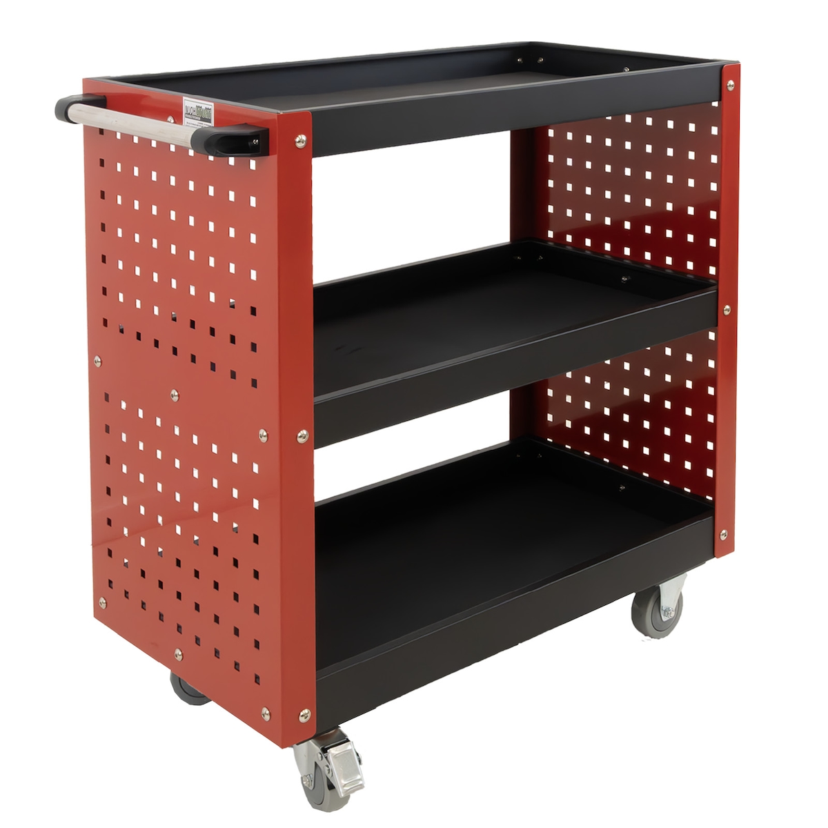 Werkstattwagen 3 Etagen Stahl rot Werkzeugwagen 70 x 39 x 79 cm auf Rollen bis 300 kg Tragkraft