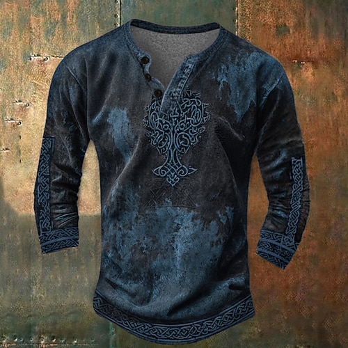 Herren Baum Wikinger Henley Hemd T-Shirt Langarm Vintage Mode Retro Lässig Ferien Ausgehen Herbst Frühling Herbst Blau Dunkelbraun Rot Purpur Grün Henley Henley T-Shirt