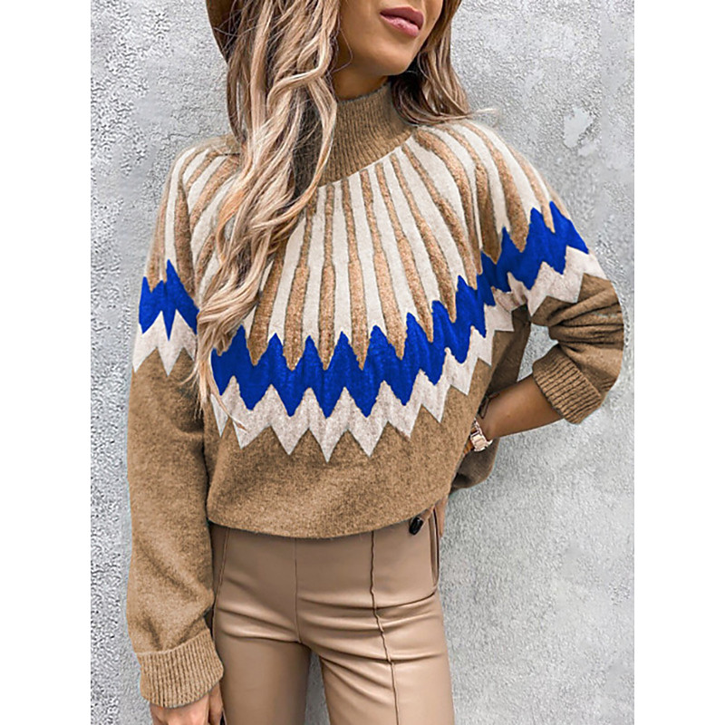 Women's Sweater Casual Soft Color Block Ribbed Crew Neck Knitted Long Sleeve Regular Tops Knit Outdoor Daily Weekend Red Green Fall Winter