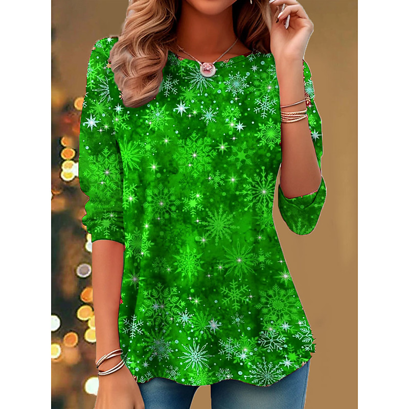 Christmas Women's Snowflake Tunic Graphic Vintage Stylish Classic Long Sleeve Crew Neck Regular Tops Daily Print Pink Red Blue Green Fall Winter