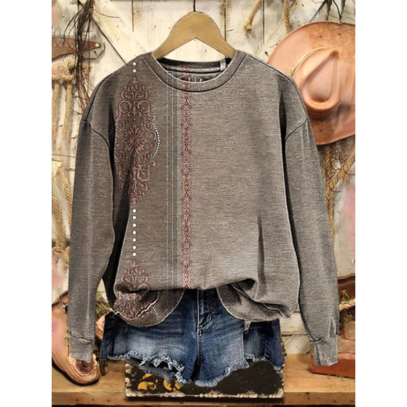 Women's Pullover Sweatshirt Graphic Paisley Warm Vintage Western Long Sleeve Crew Neck Regular Tops Street Dailywear Casual Print Brown Spring Fall Winter