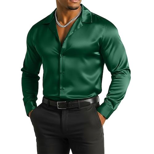 Per uomo Camicia Camicia in raso Camicia elegante Camicia con Bottoni Camicia da Ballo Tinta unica Balli di fine anno Matrimonio Nero Rosso Blu Verde Manica Lunga Collo ripiegato Tutte le stagioni