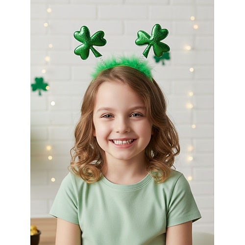 Cerchietto trifoglio di San Patrizio - cerchietto per capelli con trifoglio verde glitterato e dettagli di piume per bambini adulti, accessorio per feste in costume per festival irlandese