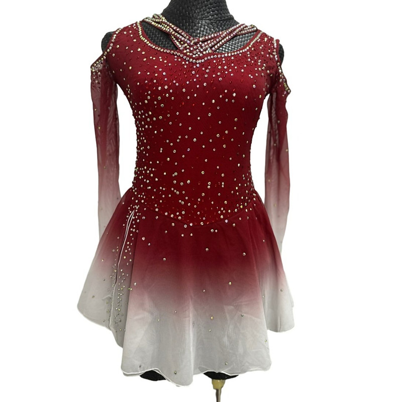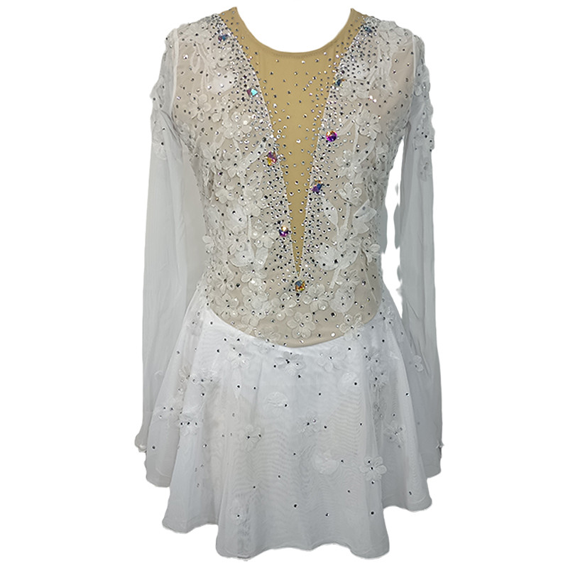 Figure Skating Dress Girls' Long Sleeves Competition Elegant Handmade Crystal Womens