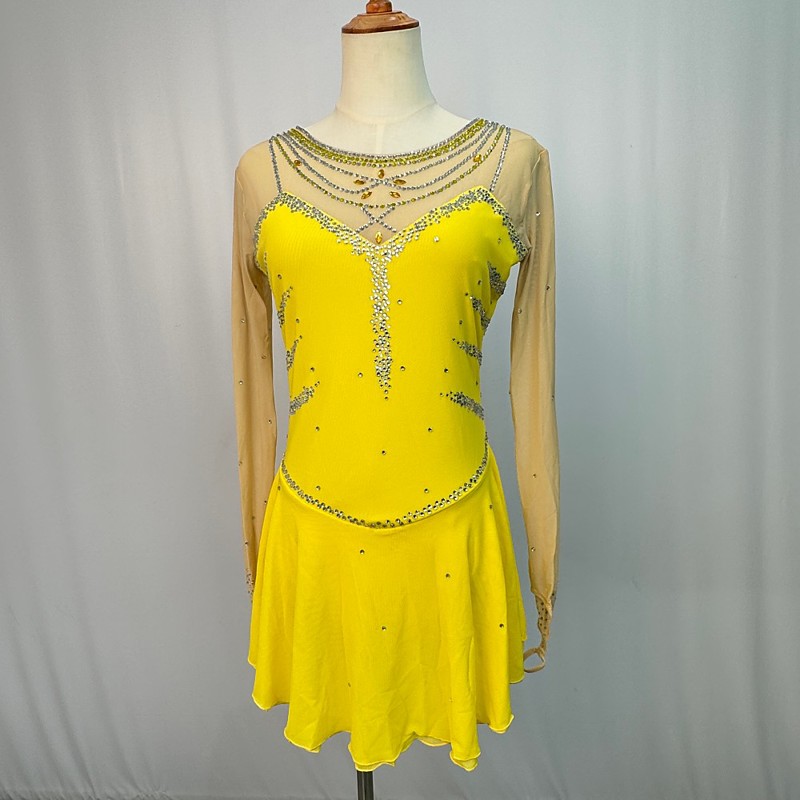 Figure Skating Dress Women's Girls' Ice Skating Dress Outfits Black White Yellow Mesh Spandex High Elasticity Training Practice Competition Skating Wear Patchwork Crystal / Rhinestone Long Sleeve Ice