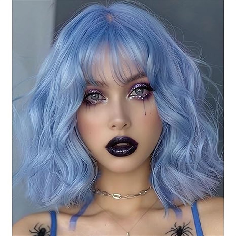 Short Bob Wig with Bangs for Women Loose Wavy Wig Curly Wavy Shoulder Length Synthetic Bob Wigs for Girl Costume Cosplay Daily Use