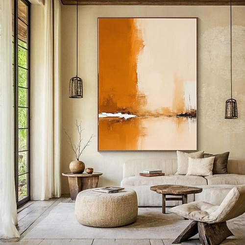 grande dipinto a olio astratto dipinto a olio fatto a mano dai toni caldi tela testurizzata calda e terrosa arte moderna decorazione murale opera d'arte per soggiorno di grandi dimensioni accento